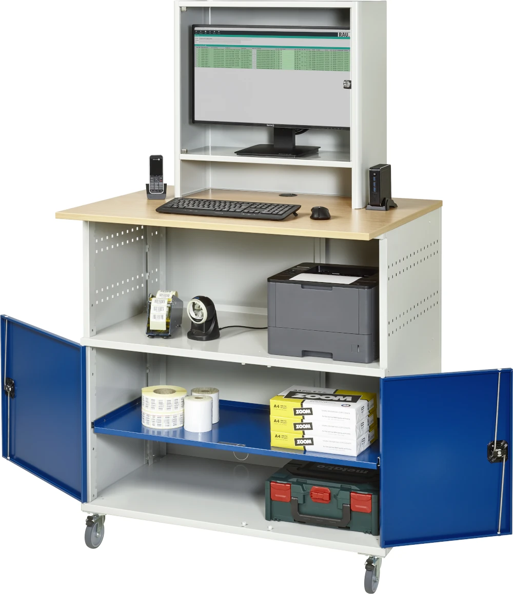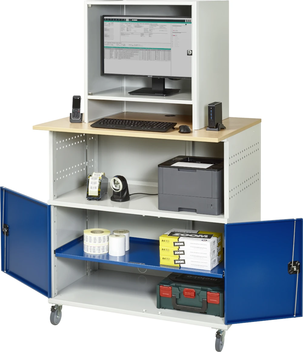 Computer-Tisch 1022 mit Monitorgehäuse T300mm, B1100xT790xH1890mm, mobil