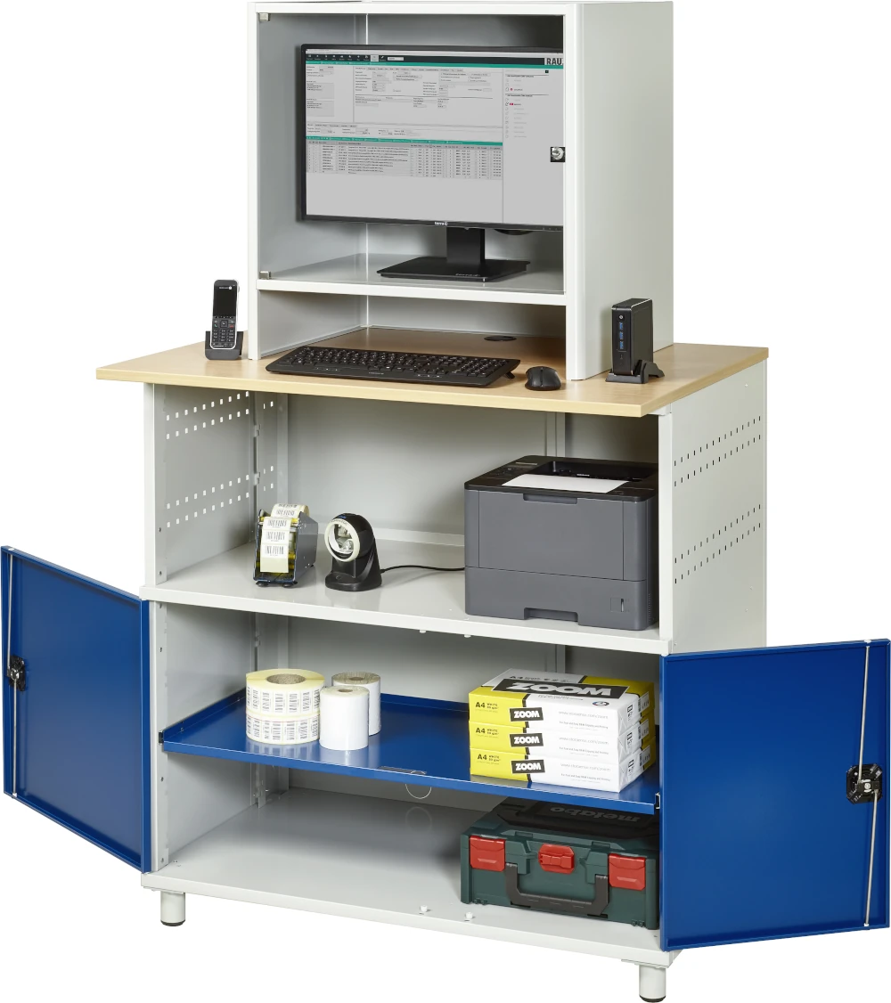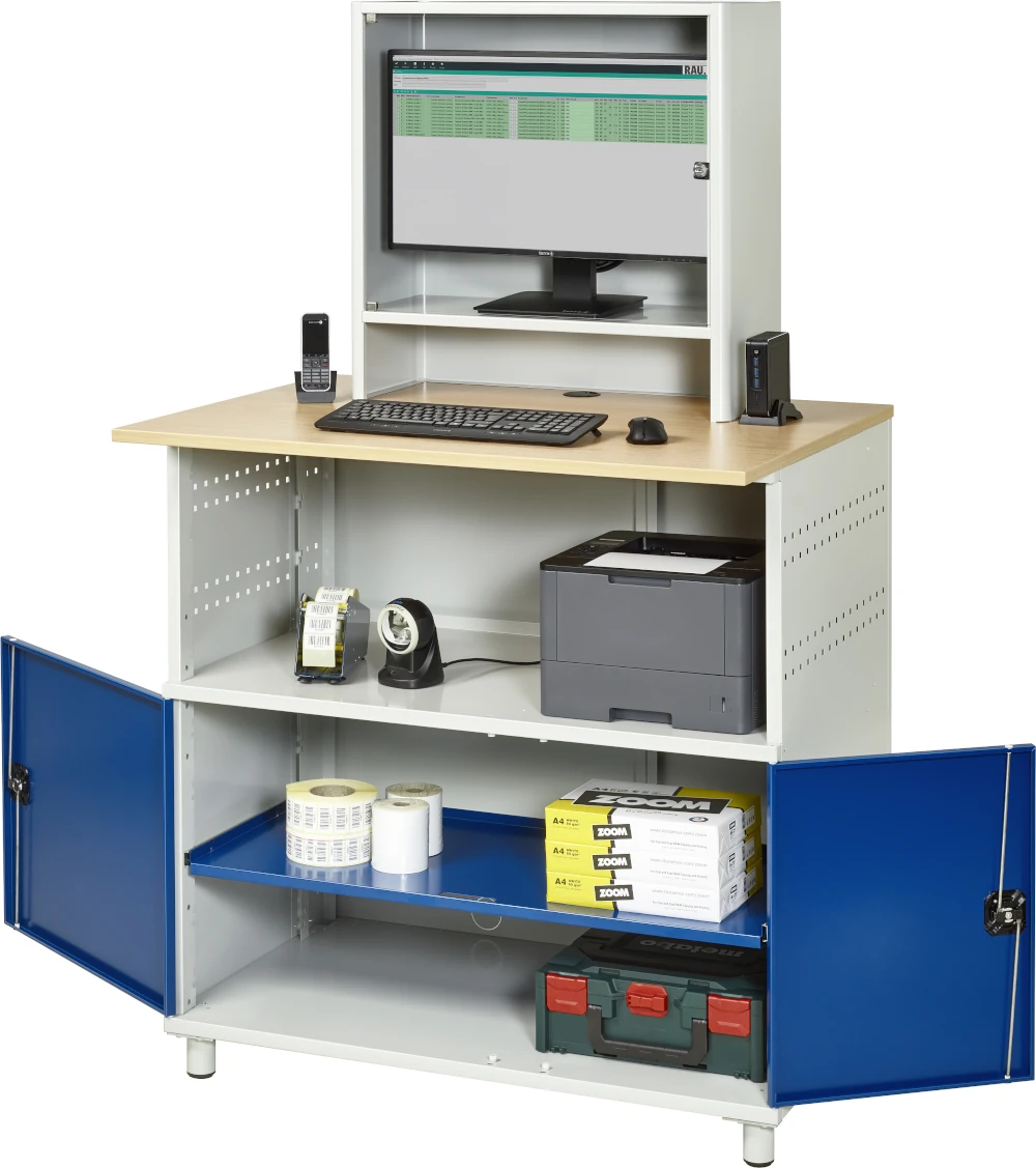Computer-Tisch 1022 mit Monitorgehäuse T550mm, B1100xT790xH1840mm, stationär