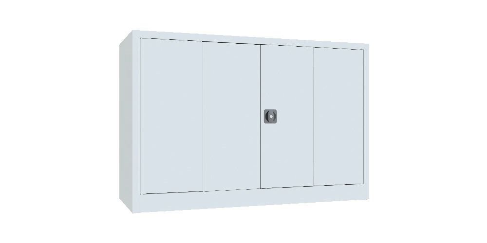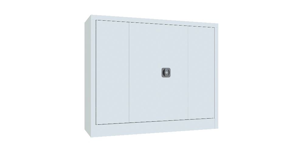 Falttürenschrank, 1000x1200x400 mm, Drehgriff, 2 Böden gepulvert, RAL 7035