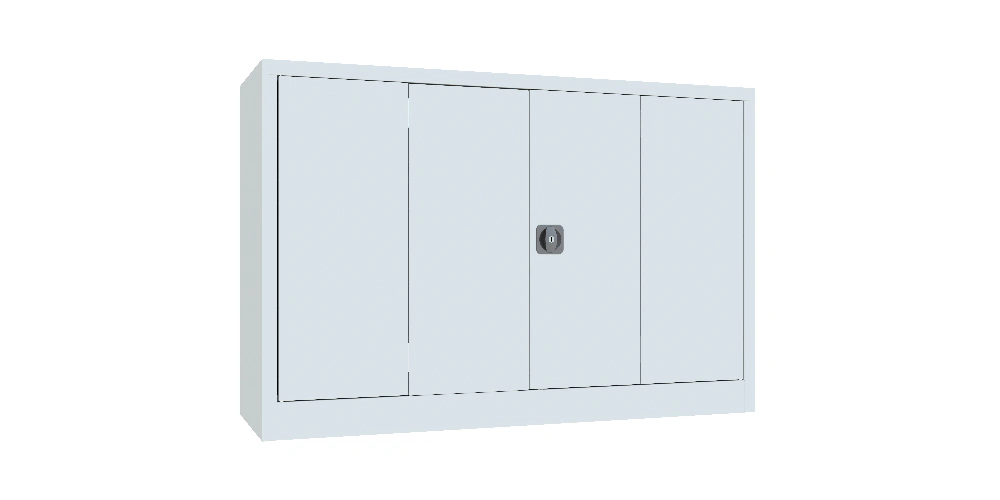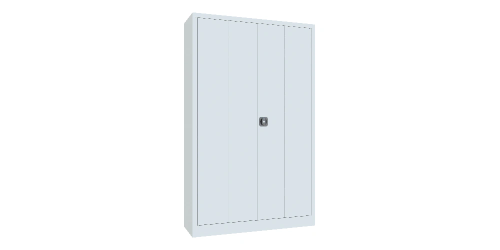 Falttürenschrank, 1000x1500x400 mm, Drehgriff, 2 Böden gepulvert, RAL 7016