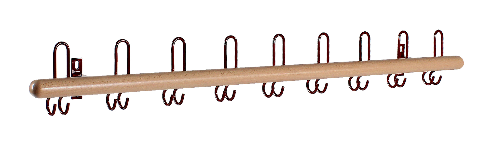 Garderobenleiste mit Buche-Blende 1170 mm lang Haken nach vorne