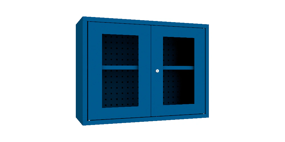 Hängeschrank, 600x800x300 mm, Sichtfenster, Lochfeldrückwand, RAL 5010