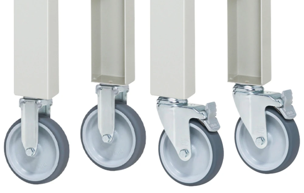 Rollensatz Arbeitstisch Tom, 2 Bock- und 2 Lenkrollen mit Feststeller