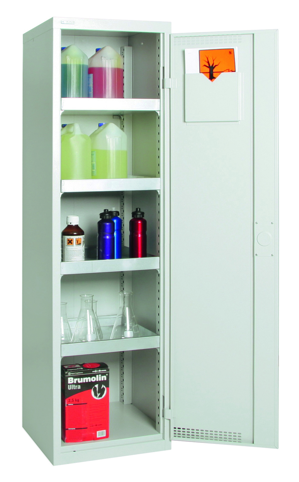 Lüllmann® Umweltschrank, 1 Tür, 4 Wannenböden, 1950 x 500 x 422 mm, grau