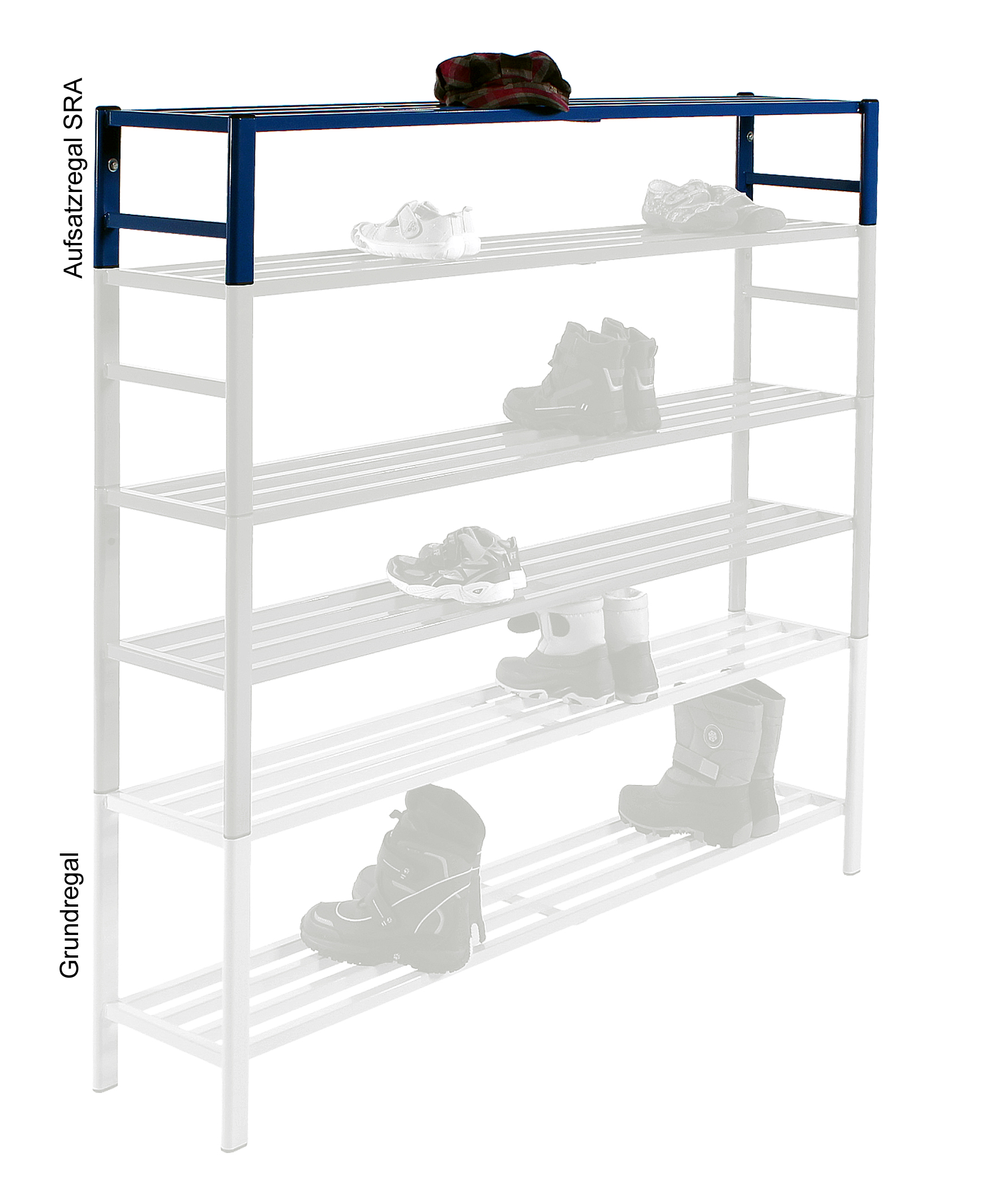 Schuhregal / Aufsatzregal doppelt für Halbschuhe, 1000 cm lang
