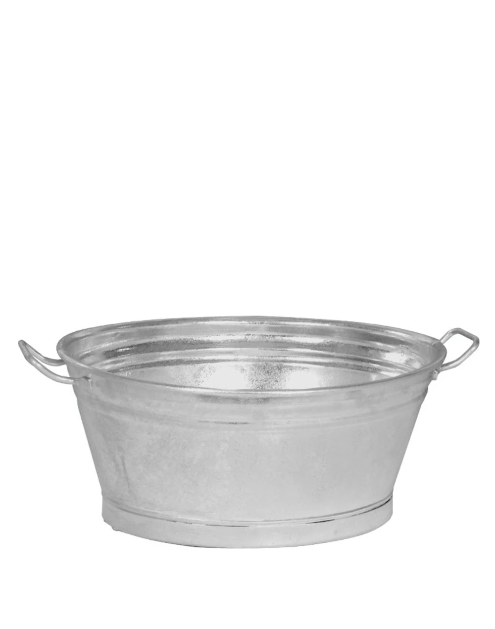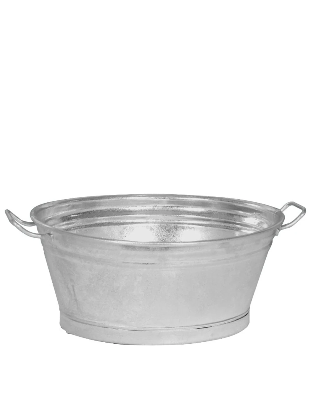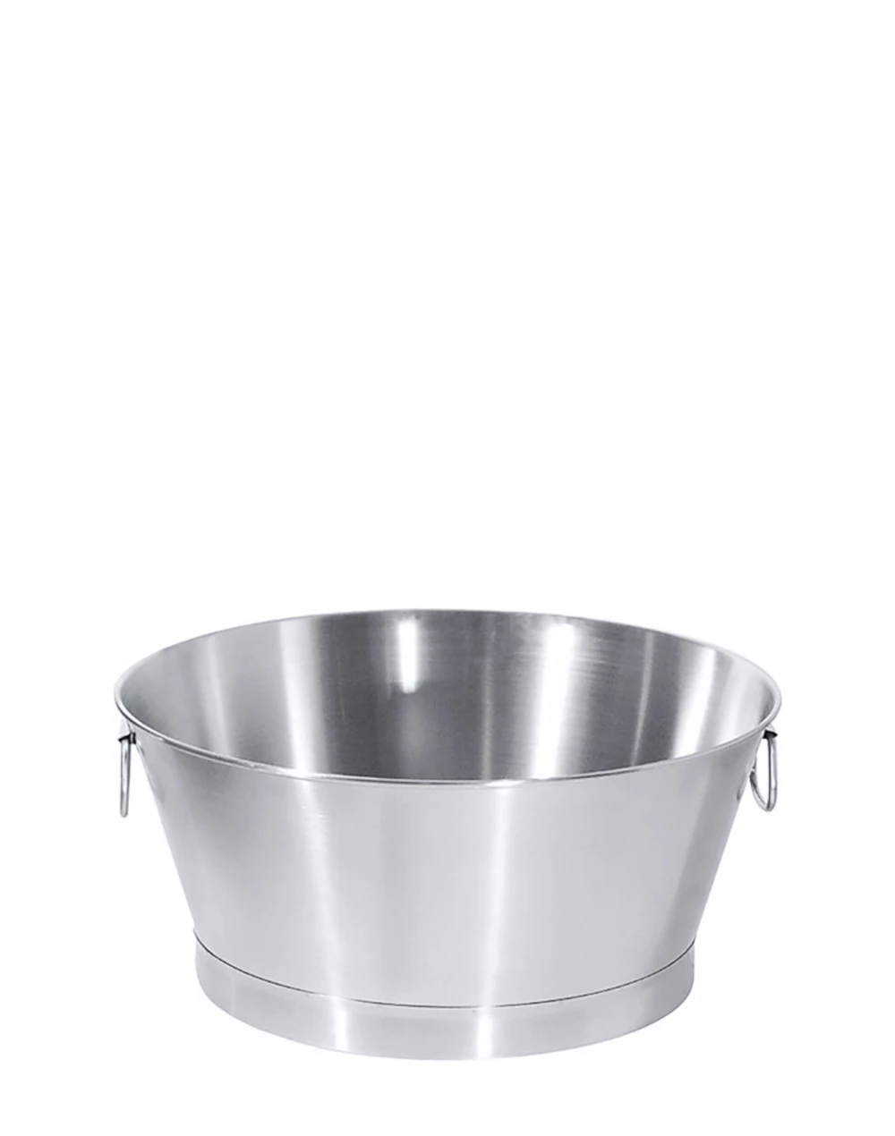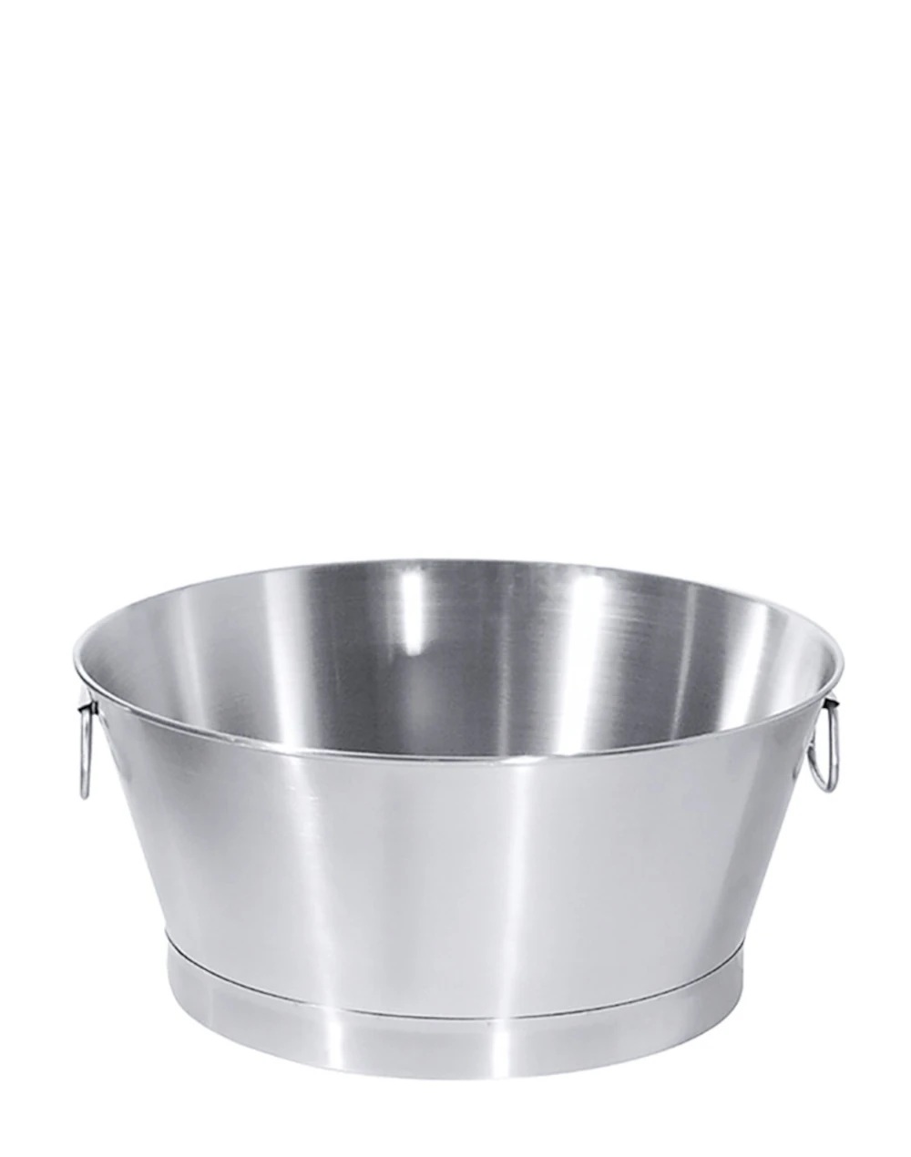 Edelstahl-Wanne 56 L, rund, mit Bodenring und zwei Fallgriffen